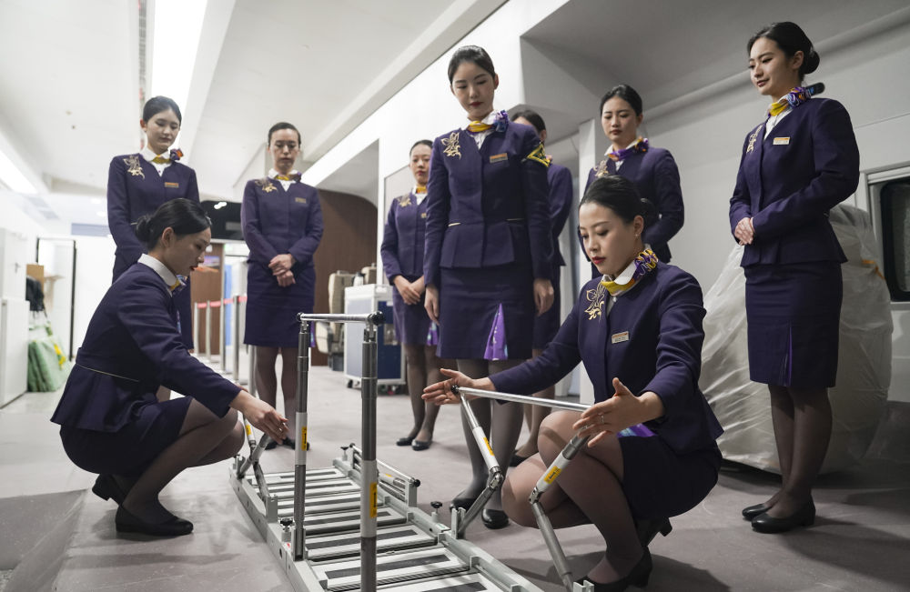 1月10日,鐵路上??瓦\(yùn)段高鐵一車隊(duì)乘務(wù)人員在列車模擬艙內(nèi)開展應(yīng)急演練培訓(xùn)。新華社發(fā)(程志兵攝)