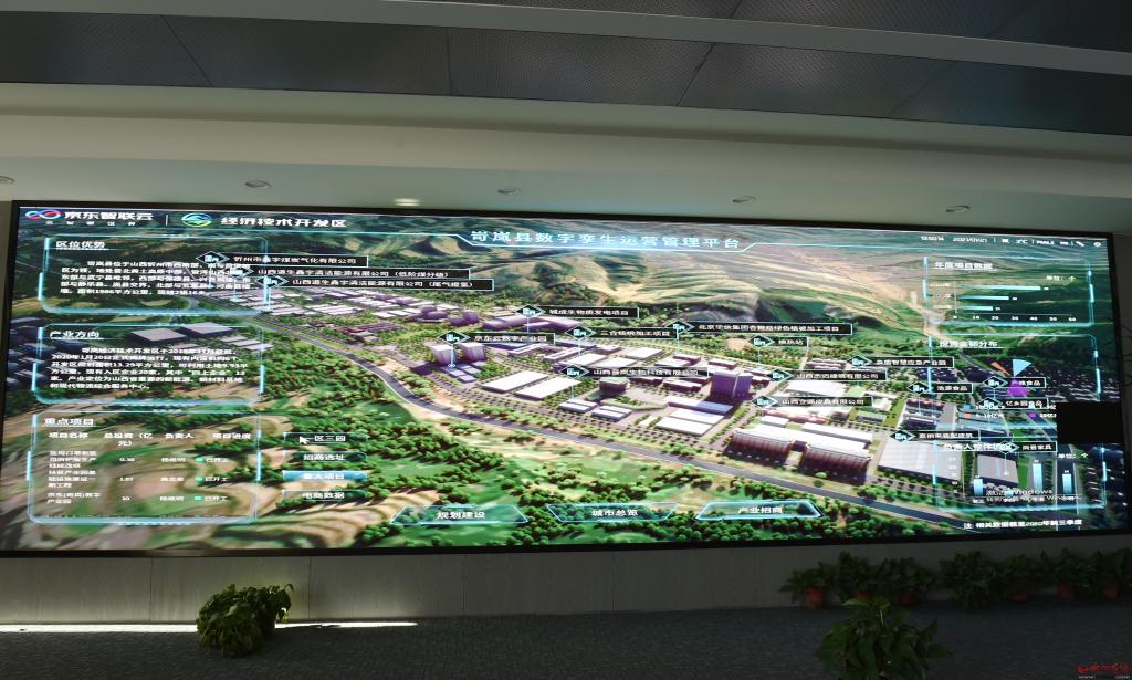 在位于岢嵐縣融媒體中心的項(xiàng)目臨時(shí)辦公地,對(duì)著占滿一堵墻的大屏幕,記者聽(tīng)取了京東(岢嵐)有關(guān)業(yè)務(wù)工作人員的情況介紹。