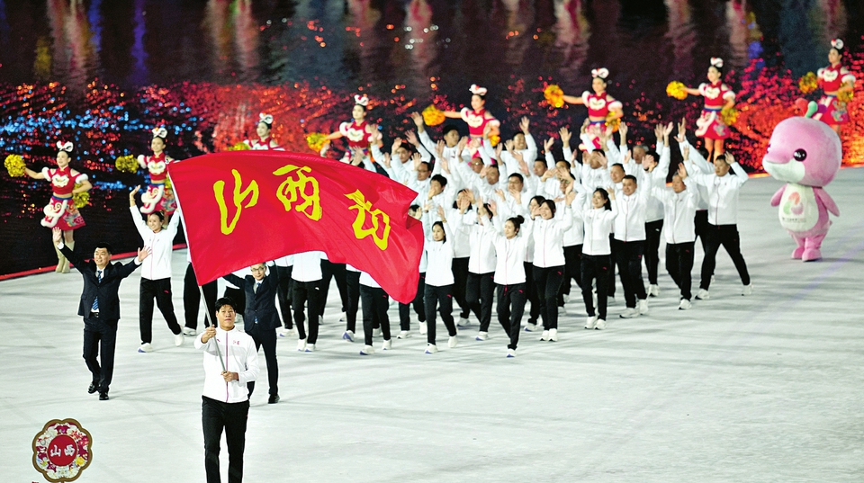 11月9日,第十五屆全國運動會開幕式在廣東奧林匹克體育中心舉行。圖為當日,山西省體育代表團在入場儀式上。