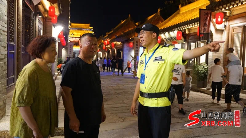 夜幕下的古城,華燈初上,忻府公安的警燈分外閃亮,巡邏民警穿梭在人群中,守護(hù)在群眾身邊,用最短時間、最快速度處理群眾緊急求助、處置各類突發(fā)警情,確保警力24小時不缺位,全力以赴守護(hù)景區(qū)和游客安全。(劉潔)