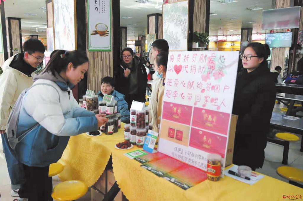 “以購代捐”活動改變了以往的捐贈模式,讓定點幫扶村的產(chǎn)品變成了商品,有效解決了農(nóng)產(chǎn)品銷路問題,既激發(fā)了農(nóng)民群眾努力生產(chǎn)、勤勞致富的積極性,又拉近了廣大師生與農(nóng)民的距離,形成了“我勤勞、我致富”“我參與、我幸?!钡牧己梅諊?。 (武大力)