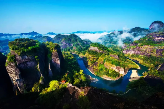 武夷山是三教名山,素有“奇秀甲東南”之美譽(yù),最高峰黃崗山海拔2158米,為東南第一峰,號(hào)稱(chēng)“華東屋脊”。倘登高俯視,云興霞蔚,那九曲溪流、三十六峰、七十二洞、九十九巖的山水奇境,令人目不暇接,嘖嘖稱(chēng)奇。五臺(tái)山是世界佛教名山,享有“清涼圣境”之美譽(yù),最高峰葉斗峰海拔3061米,為華北第一峰,號(hào)稱(chēng)“華北屋脊”。若置身臺(tái)巔,東臺(tái)能看云海日出,西臺(tái)能賞清風(fēng)明月,南臺(tái)能觀(guān)爛漫山花,北臺(tái)能望無(wú)垢瑞雪,中臺(tái)可攬星辰萬(wàn)象,一時(shí)恍若仙境,不由得馳思遐想。