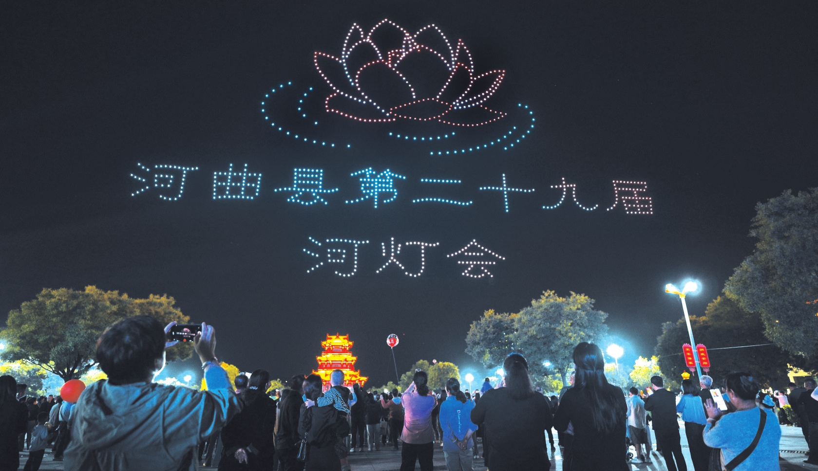 為期三天的無人機表演,創(chuàng)新采用3D動態(tài)編隊技術(shù),通過40組高精度畫面切換,將河曲的地理標志、文化符號與時代精神深度融合,實現(xiàn)“一幕一主題、幀幀皆故事”的沉浸式體驗,以“科技+文旅”讓市民和游客領(lǐng)略大美河曲的獨特魅力。市民張一婷說:“能在家門口看到這么高水平的無人機表演,挺自豪的。這種創(chuàng)新的‘文化表達’方式將我們家鄉(xiāng)的故事用高科技手段‘寫’在了夜空這張畫卷上。這說明家鄉(xiāng)的發(fā)展不只在經(jīng)濟方面,更是一種文化上的自信與創(chuàng)新。河燈與無人機燈光天地呼應(yīng),是傳統(tǒng)與現(xiàn)代的完美融合?!?/p>
