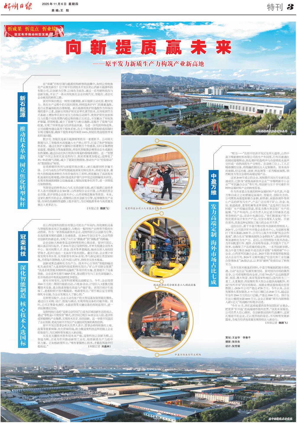 從攻克關(guān)鍵技術(shù)到布局未來產(chǎn)能,冠榮科技以創(chuàng)新為楫,以智造為帆,正成為忻州推動新型工業(yè)化、培育新質(zhì)生產(chǎn)力的中堅力量。正如楊淑榮所言:“唯有掌握核心技術(shù),才能在風(fēng)浪中行穩(wěn)致遠(yuǎn)?!保ū緢笥浾邉Ⅵ瘟郑?/p>