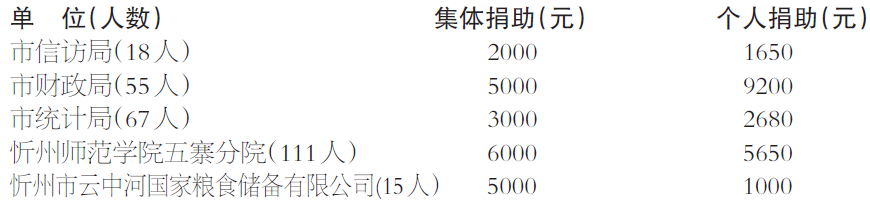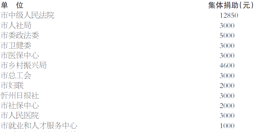 2023年11月10日,市委、市政府辦公室發(fā)出《關(guān)于開展“送溫暖、獻愛心”社會捐助活動的通知》,市四大班子領(lǐng)導(dǎo)和機關(guān)率先垂范,各縣(市、區(qū))、各單位高度重視,認真組織,廣大干部職工積極響應(yīng),“送溫暖、獻愛心”社會捐助活動有效開展。截至2024年4月底,市直133個單位組織干部職工參與捐助,共捐款83.37萬元,各縣(市、區(qū))接收捐款365.92萬元,合計捐款449.29萬元,為解決我市困難群眾的基本生活問題起到了積極作用?,F(xiàn)將捐助情況公告如下(市直單位以捐助時間先后為序):