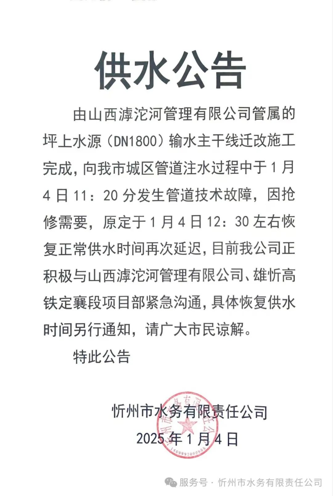 最新消息!城區(qū)恢復(fù)供水時(shí)間延遲