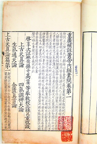 明嘉靖二十九年重廣補注黃帝內(nèi)經(jīng)素問二十四卷,甘肅省圖書館藏?!饵S帝內(nèi)經(jīng)》提出對瘟疫要早發(fā)現(xiàn)早治療,治療后防止復(fù)發(fā)。