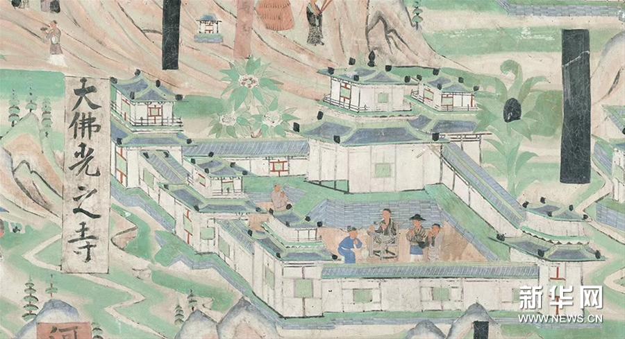 這是敦煌壁畫《五臺山圖》中的客棧(資料照片)。(新華社發(fā) 敦煌研究院供圖)