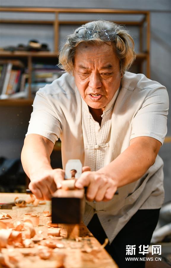 8月25日,在天津職業(yè)大學(xué)辛全生大師木藝工作室,辛全生在用刨刀刮料。今年62歲的辛全生是天津市南開區(qū)傳統(tǒng)木工榫卯技藝的非遺代表性項目傳承人。2019年9月,天津職業(yè)大學(xué)為發(fā)展并傳承木工技藝,邀請辛全生作為老師給學(xué)生們授課,負(fù)責(zé)教授學(xué)生們榫卯結(jié)構(gòu)知識和木藝家具制作等實(shí)用技巧,并于2019年底在校內(nèi)建立辛全生大師木藝工作室。 辛全生出生于匠人家庭,他聽從父親的建議從16歲開始學(xué)習(xí)木工。40余年的木工生涯,辛全生經(jīng)歷過木工行業(yè)曾經(jīng)的紅火和后來的逐漸衰落,也曾在最艱難的時候做過別的營生。但無論如何,辛全生始終忘不了自己的木工身份。“老祖宗留下來的東西不能丟了,要傳承下去,否則將來的后代誰都不知道木工榫卯技術(shù)的存在了?!毙寥f。 近年來,有近百名不同職業(yè)、不同年齡的人慕名前來拜辛全生為師,學(xué)習(xí)傳統(tǒng)木工榫卯技藝。辛全生說,我會讓徒弟們學(xué)好木工榫卯技藝,讓中國的傳統(tǒng)手藝發(fā)揚(yáng)光大。新華社發(fā)(孫凡越 攝)