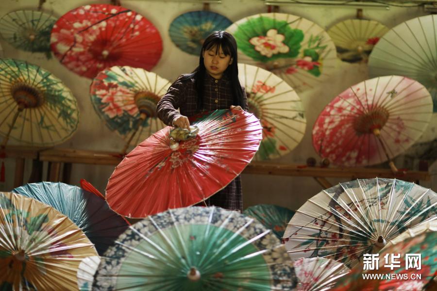 2019年6月,“赤水油紙傘制作技藝”被列入貴州省級非物質(zhì)文化遺產(chǎn)名錄。當(dāng)?shù)匾劳写笸沛?zhèn)的旅游產(chǎn)業(yè),采取政策引導(dǎo)、資金扶持等方式,鼓勵民間藝人重拾油紙傘制作技藝。油紙傘產(chǎn)品投放旅游市場,深受消費者青睞。油紙傘制作不僅帶動眾多群眾就業(yè)增收,也讓油紙傘技藝重新煥發(fā)生機。新華社發(fā)(王長育 攝)