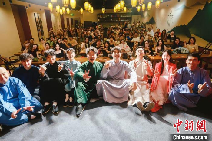 “之前只在線上聽過傳統(tǒng)相聲,來了才知道相聲還能這么玩,我錄制了視頻發(fā)在朋友圈,好幾個(gè)朋友都說要來打卡?!薄癦世代”張倩是這家相聲館的“老粉”,每周從不缺席?!拔疫€‘安利’給了丈夫和孩子,我們經(jīng)常一家三口來聽相聲,孩子現(xiàn)在都能說兩句貫口了?!睆堎徽f。