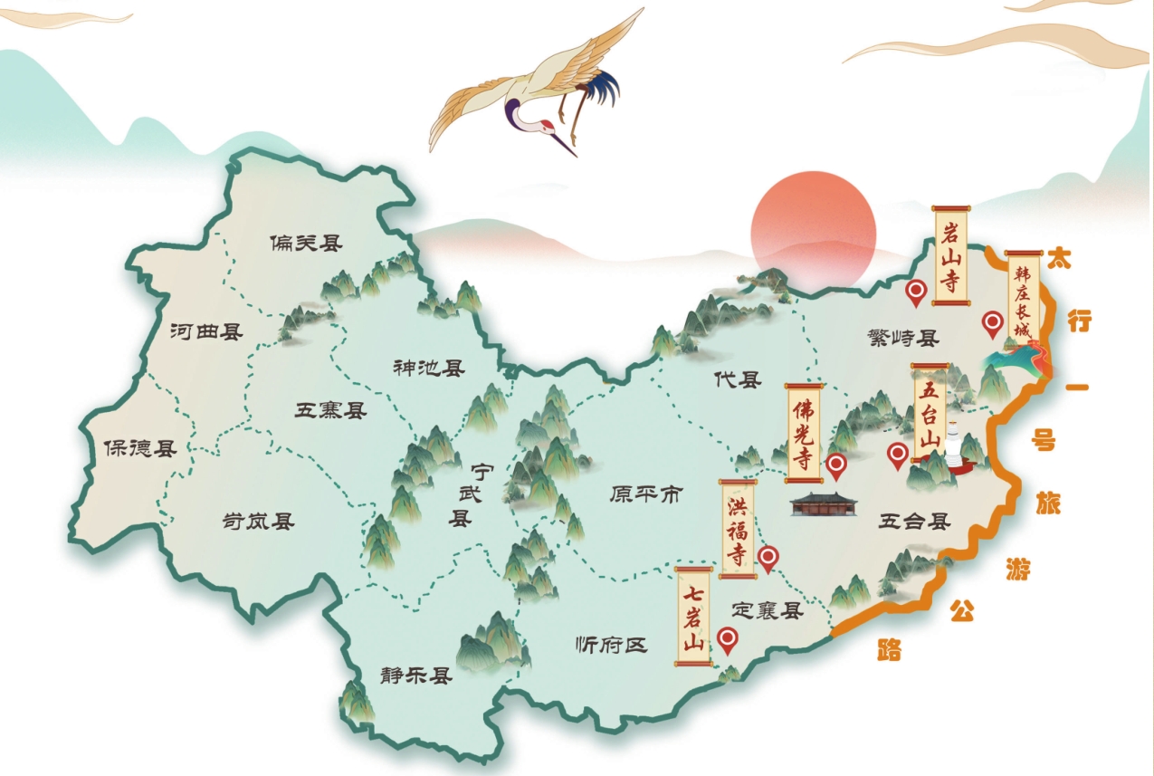 太行一號(hào)旅游公路是山西省農(nóng)村道路的重要組成部分,同時(shí)也是打造黃河、長城、太行三大旅游板塊,推進(jìn)鄉(xiāng)村振興的戰(zhàn)略性基礎(chǔ)性工程。沿途貫穿忻州、太原、陽泉、晉中、長治、晉城6市45個(gè)縣(市、區(qū)),聯(lián)通全省122個(gè)A級(jí)以上景區(qū)、239個(gè)非A級(jí)旅游資源(點(diǎn)),主線已成功入選全國20條“行在鄉(xiāng)村,游在路上”的最美自駕精品路線。旅游公路忻州段起點(diǎn)位于五臺(tái)縣韓家樓村,途經(jīng)五臺(tái)山風(fēng)景區(qū),終點(diǎn)與繁峙縣平型關(guān)長城一號(hào)旅游公路主線相接,全長185公里。