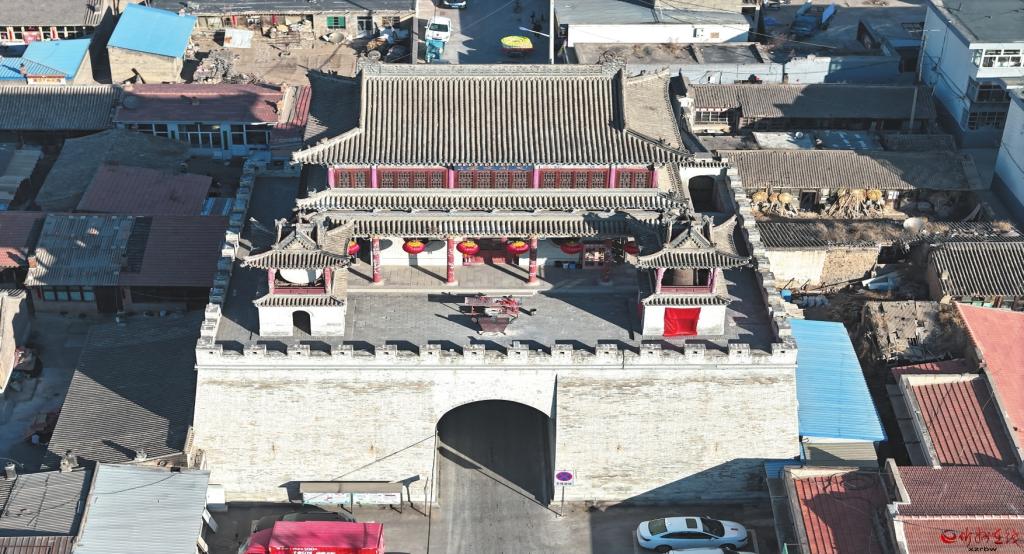 據重修鼓樓碑和《道光、光緒繁峙縣志》記載,該鼓樓始建于明代萬歷十四年(1586),清康熙二十七年(1688)維修,清乾隆二十三年(1758)增設鐘樓、鼓樓,光緒二年(1878)重修,現存建筑為明、清建筑。城臺呈方形,條石筑基,青磚鋪面,內為夯土。臺基中設拱券門洞,南北貫通。城樓內供奉文昌神,又稱為文昌閣,面寬五間,進深四椽,七檁前后廊構架,二層三檐歇山頂,上層斗拱一斗二升交麻葉,下層明間設拱券門,次間圓形窗,四角施通天柱,內設樓梯,可登二層。