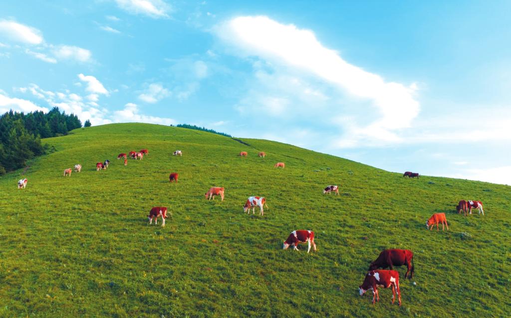 春之韻,萬(wàn)類(lèi)復(fù)蘇的萌動(dòng)。廣袤的草甸上,花海如潮,在暖陽(yáng)的照耀下,每一片花瓣都閃爍著生命的光澤,氣息芬芳,沁人心脾。牧人趕著羊群上山,清脆的蹄聲像一串輕快的鼓點(diǎn),叩醒了山谷的春天。最是晨昏時(shí)分,山間乳白的嵐氣與村落青灰的炊煙交織共舞,林間清脆的鳥(niǎo)語(yǔ)與牧人悠長(zhǎng)的吆喝聲和鳴,共同勾勒出一幅生動(dòng)而和諧的畫(huà)卷。
