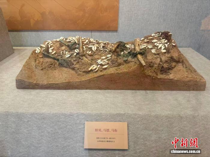 2月10日,“黃土尋駿——山西出土馬文物展”在山西考古博物館開展。圖為出土于山西垣曲北白鵝墓地的一組馬鏢、馬銜、蚌貝。 中新社記者 楊靜 攝