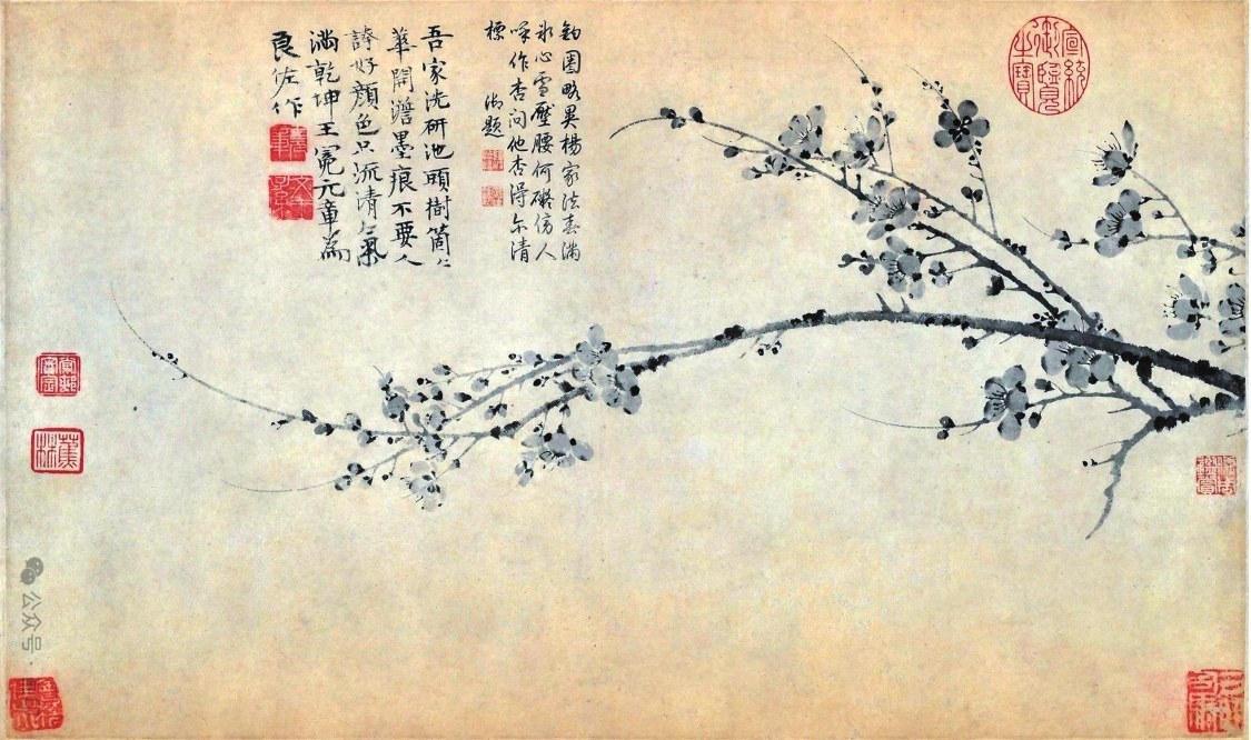 以梅入畫,最早出現(xiàn)于南北朝時(shí)期,不過并未成氣候,直到宋代,以梅花入題的中國(guó)畫才顯露實(shí)績(jī)。人們所熟知的“梅妻鶴子”典故與北宋隱士林逋有關(guān),雖以愛梅著稱,但他并無(wú)梅花繪畫作品傳世。被稱為“墨梅始祖”的僧人仲仁亦活躍于宋代,他以水墨深淺描摹梅花,全然摒棄色彩,后世稱之為“墨梅”。