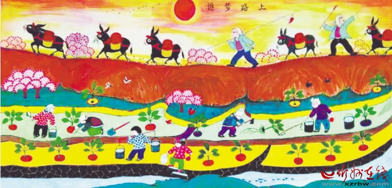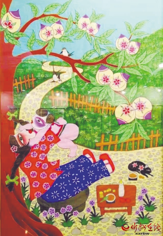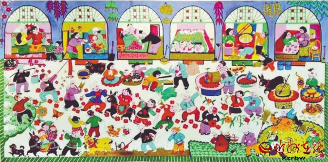 炕圍畫又稱“墻圍畫”,是一種中國(guó)民間常見(jiàn)的室內(nèi)裝飾畫。忻州處于高寒地帶,在農(nóng)村家家戶戶都用火炕取暖御寒,炕上的墻面極易脫落起皮,蹭臟衣物被褥。于是人們以刷墻所用的白土調(diào)以膠水,在環(huán)炕的墻上涂高約二尺的“圍子”,既保護(hù)了墻面,又使人們免遭臟衣污物之累。后來(lái),炕圍畫逐漸發(fā)展為以顏料做底、色彩畫花、桐油涂罩,既鮮艷明亮,又堅(jiān)固耐久。日常臟污了,用濕布擦拭,則又光亮如新。