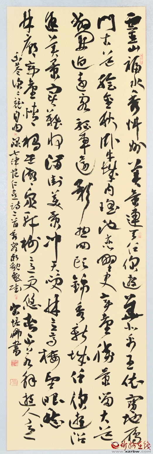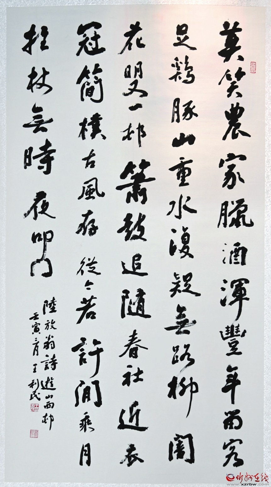 據(jù)悉,今年5月,忻州市文聯(lián)面向全市書畫界征集主題書畫作品,同時向書畫名家進行約稿,征集書法作品271件,美術作品30件。經(jīng)過公正嚴格組織評選,最后入選展覽作品80余件。作品藝術形式多樣,諸體兼?zhèn)洌瑯嬎夹路f,具有較高的思想性與藝術性,從書法繪畫的視野,展現(xiàn)出太忻一體化經(jīng)濟區(qū)建設的進程,充盈著高雅的藝術格調(diào)和鮮活的時代氣息。