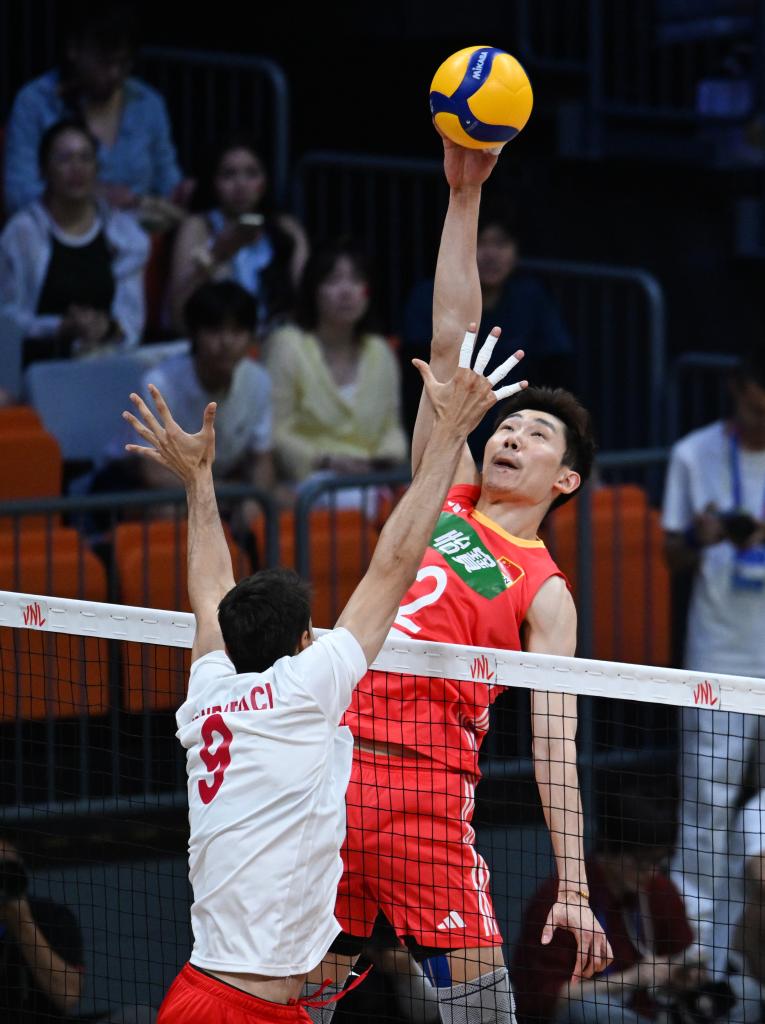 土耳其隊(duì)球員穆拉特·葉尼帕扎爾(左)、貝迪爾汗·比比爾在比賽中攔網(wǎng)。新華社記者 張博文 攝 中國(guó)隊(duì)主教練海寧說:“今天更像是一場(chǎng)心理戰(zhàn),我們?nèi)鄙倭粟A球的斗志和能量。土耳其隊(duì)比我們更敏銳、果斷。我們要從失利中吸取教訓(xùn),在贏得兩場(chǎng)比賽后,你必須付出更多才能取勝,顯然我們今天沒做到這點(diǎn)。” 海寧對(duì)隊(duì)伍在該站的整體表現(xiàn)感到滿意和欣喜。他說:“在主力球員張景胤、王徑一等因傷缺席的情況下,我們?nèi)〉昧藘蛇B勝,這對(duì)中國(guó)隊(duì)來說前進(jìn)了一大步?!?/p> 根據(jù)賽程,中國(guó)隊(duì)將分別于6月底和7月中旬參加美國(guó)芝加哥站、波蘭格但斯克站的比賽。海寧表示,無論是主場(chǎng)還是客場(chǎng),中國(guó)隊(duì)不會(huì)懼怕強(qiáng)手。