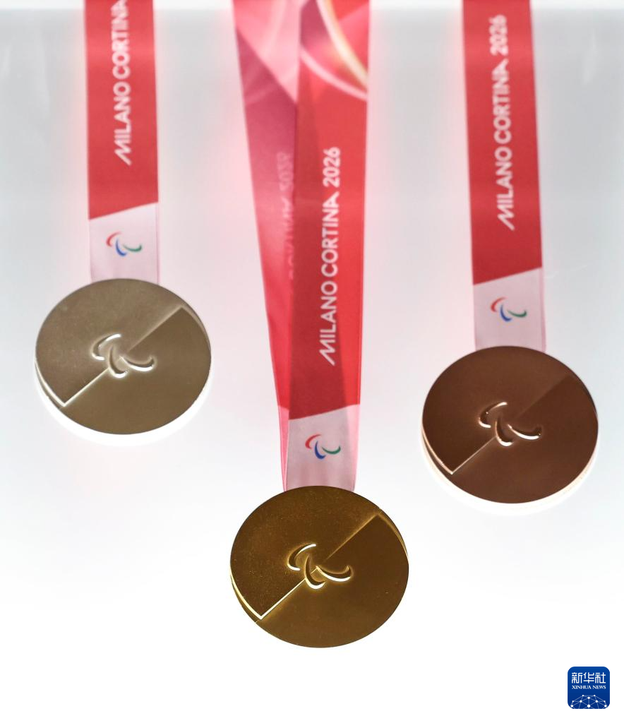 7月15日,2026年米蘭-科爾蒂納冬奧會和冬殘奧會獎牌在意大利威尼斯的威尼托大區(qū)政府總部正式發(fā)布。這是發(fā)布活動現(xiàn)場拍攝的2026年米蘭-科爾蒂納冬殘奧會獎牌。新華社記者 李京 攝 據(jù)帕尼耶介紹,獎牌正面分別是奧運五環(huán)及殘奧會標志,背面則分別為米蘭冬奧會及冬殘奧會的標志?!岸瑲垔W會獎牌背面刻有盲文,便于視障人士辨認具體項目。此外,獎牌側(cè)面還有特殊標記,表明這枚獎牌是金牌、銀牌還是銅牌?!迸聊嵋f。