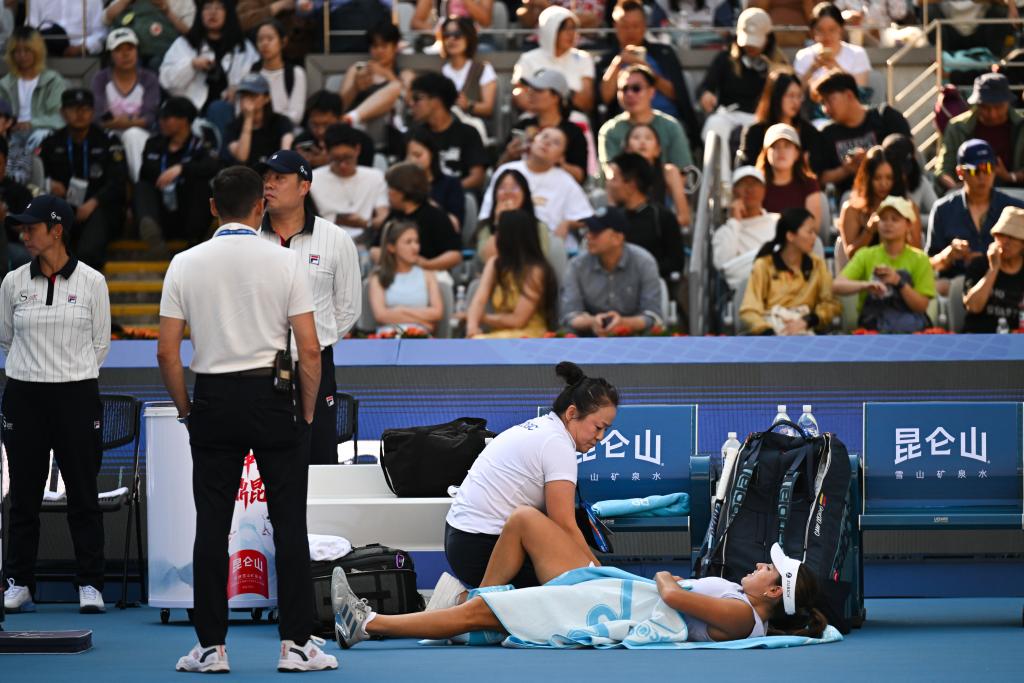 進入第三盤,諾斯科娃先聲奪人,很快建立3:0的領(lǐng)先優(yōu)勢。局間休息時,醫(yī)務(wù)人員上場與鄭欽文交流。短暫溝通后,鄭欽文選擇退賽,比賽就此結(jié)束。