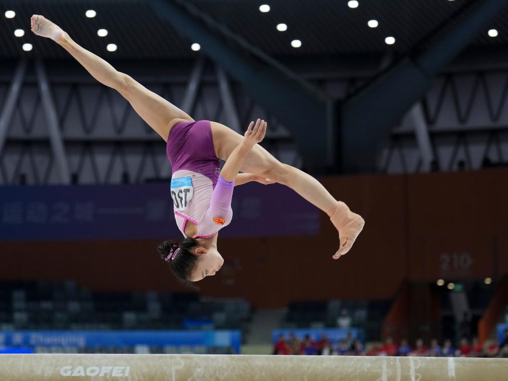 11月13日,廣東隊選手鐘圻在平衡木比賽中。新華社記者 胥冰潔 攝
