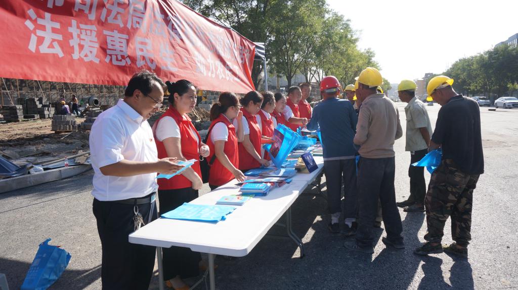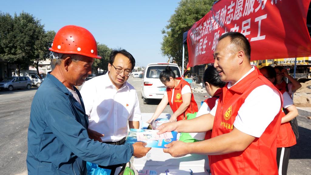 為深入貫徹落實(shí)習(xí)近平新時(shí)代中國特色社會(huì)主義思想和黨的十九大及十九屆二中、三中、四中全會(huì)精神,貫徹落實(shí)《保障農(nóng)民工工資支付條例》和國家、山西省關(guān)于農(nóng)民工服務(wù)工作的部署,切實(shí)加強(qiáng)我市農(nóng)民工安全生產(chǎn)意識(shí),提高農(nóng)民工的維權(quán)意識(shí)和維權(quán)能力,8月13日下午,忻州市司法局組織市法律援助中心、公證處、律師事務(wù)所、司法鑒定中心組成法律援助志愿服務(wù)隊(duì),走進(jìn)忻州古城建筑工地現(xiàn)場(chǎng),開展了“法援惠民生·助力農(nóng)民工”法律援助志愿服務(wù)活動(dòng)。