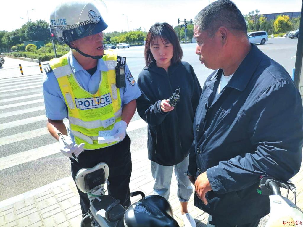 行人騎行電動(dòng)車(chē)闖紅燈接受教育。 張志遠(yuǎn) 攝