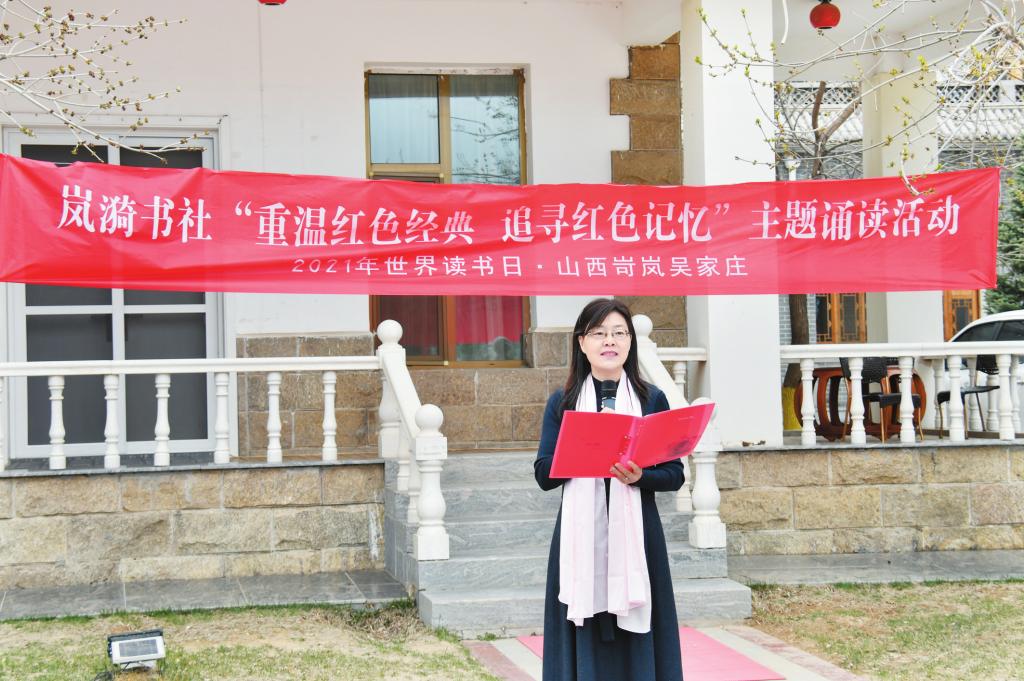 近日,為響應(yīng)忻州市第十屆讀書月活動(dòng)的號(hào)召,岢嵐縣嵐漪書社在新農(nóng)村吳家莊舉辦“重溫紅色經(jīng)典,追尋紅色記憶”主題誦讀活動(dòng)。來自全縣各行各業(yè)的讀書愛好者,在美麗的新農(nóng)村,聆聽紅色故事,感悟家國情懷。作家彭圖,詩人梁生智、李霖,中國朗誦協(xié)會(huì)會(huì)員趙旭和嵐漪書社的社員們一起,誦經(jīng)典、品書香、話讀書、談理想。岢嵐縣委宣傳部、縣文聯(lián)向誦讀者贈(zèng)送《趙家洼的消失與重生》《文化岢嵐》《六個(gè)黨員的故事》等書籍。