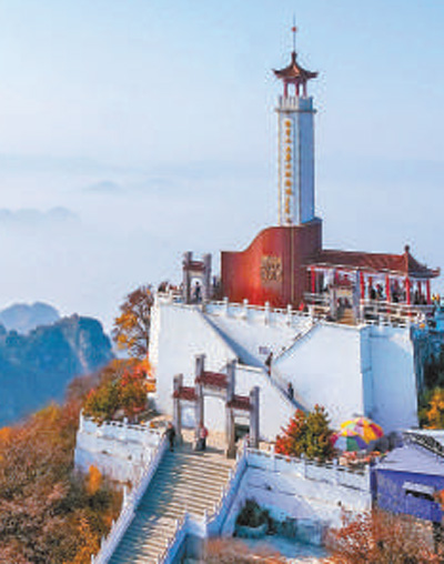 5月,河北易縣狼牙山滿目蒼翠。主峰棋盤陀上建有狼牙山五勇士紀(jì)念塔,塔西的小蓮花峰,便是昔日五壯士跳崖的地方。潔白的紀(jì)念塔矗立山巔,在藍(lán)天白云映襯下莊嚴(yán)肅穆。