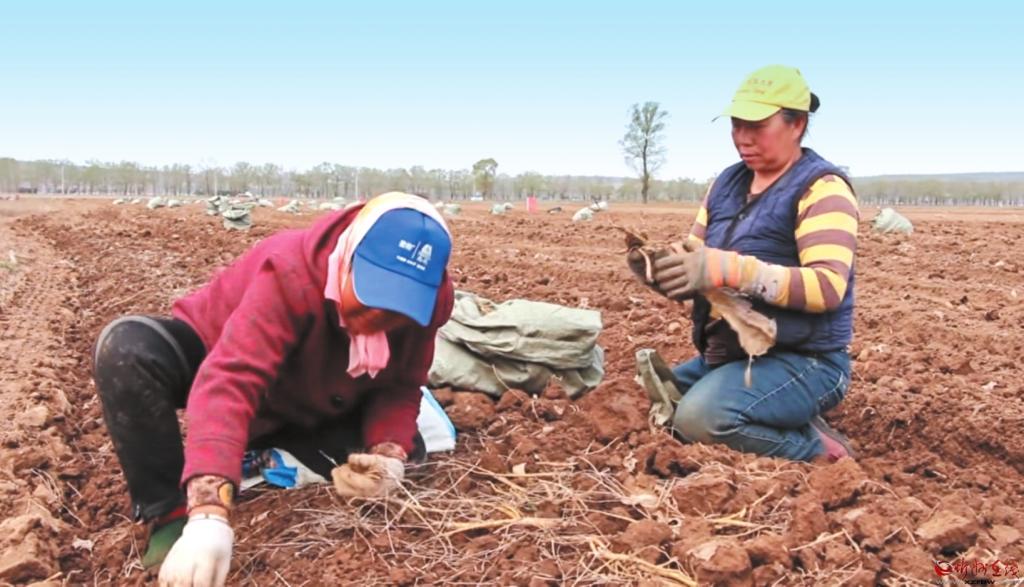 隨著機(jī)械的轟鳴聲響起,一根根健壯的黃芪苗破土而出,田間地頭彌漫著淡淡的藥香。藥農(nóng)們分工明確,協(xié)同作戰(zhàn),有的精心撿拾,有的根據(jù)黃芪苗的粗細(xì)進(jìn)行分揀和捆綁,共同勾勒出一幅生機(jī)勃勃的春景圖。