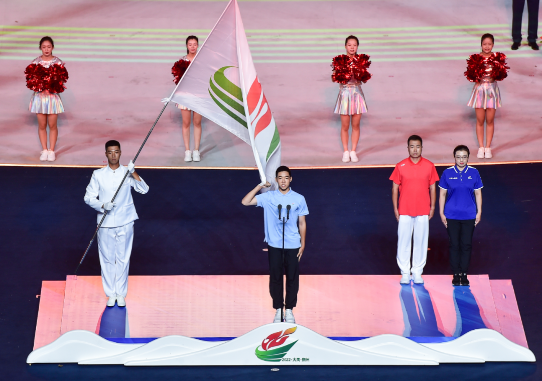 富有地域特色的暖場表演過后,在一萬多名現(xiàn)場觀眾聲震云霄的倒計時中,開幕儀式正式開始。國旗和會旗入場儀式后,各代表隊運動員、教練員在引導(dǎo)員和執(zhí)旗手的引導(dǎo)下,闊步入場。大同和朔州作為東道主,壓軸亮相,得到了觀眾的熱烈歡呼。之后,升國旗儀式和升會旗儀式莊嚴進行,山西省第十六屆運動會宣布開幕。