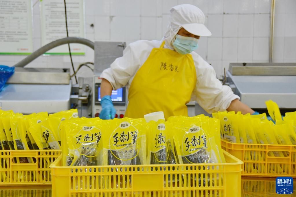 工人在福建省建甌市一家筍竹加工企業(yè)加工手剝筍產(chǎn)品(6月8日攝)。新華社記者 張華迎 攝 在東峰鎮(zhèn),像葉揚(yáng)杰這樣的種植戶不在少數(shù)。東峰鎮(zhèn)農(nóng)技站站長侯立和告訴記者,目前東峰鎮(zhèn)20個(gè)村場300多個(gè)農(nóng)戶從事雷竹種植,全鎮(zhèn)雷竹種植面積超過1萬畝,帶動(dòng)戶均年增收超過6萬元。 豐富的竹資源為建甌竹產(chǎn)業(yè)的發(fā)展提供了有利條件。裁斷、仿形成形、雕刻、拋光、打磨、噴油(漆)、烘干、包裝……在福建百豐竹業(yè)有限公司生產(chǎn)車間內(nèi),一塊塊竹胚板經(jīng)過加工被制成了竹砧板、竹面包板、竹托盤等產(chǎn)品。百豐竹業(yè)公司負(fù)責(zé)人楊書鋼介紹,企業(yè)去年產(chǎn)值1.2億元,納稅超過600萬元,帶動(dòng)周邊村莊200多名群眾就業(yè)增收。
