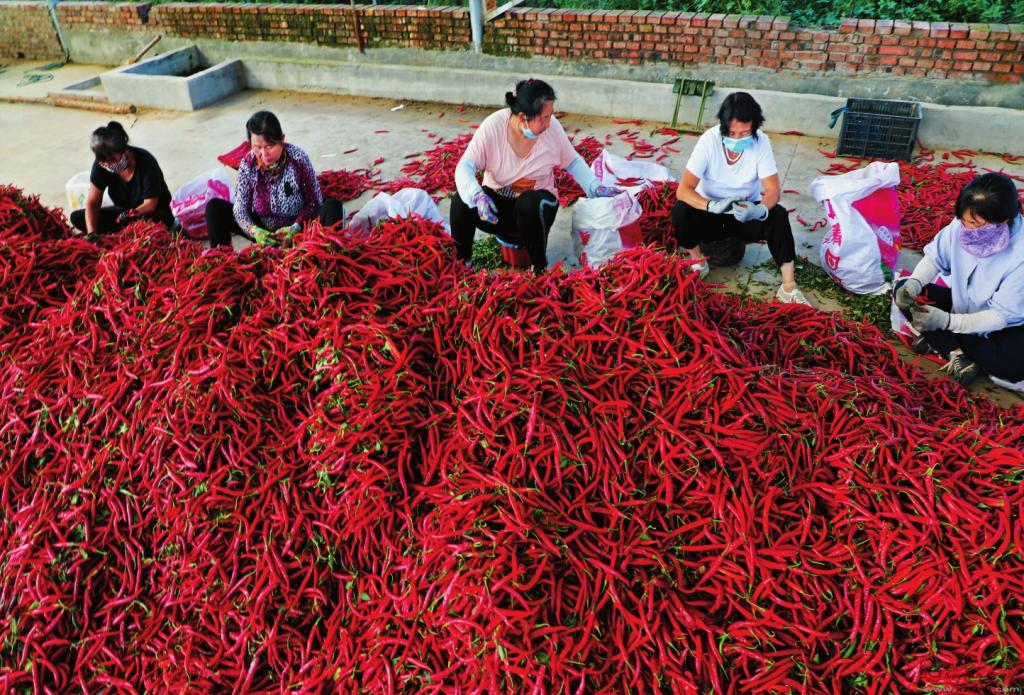 “辣椒是個寶,群眾增收離不了?!逼娲彐?zhèn)蔚野村的辣椒種植大戶陳戌平說,辣椒是勞動密集型產(chǎn)業(yè),種植效益較高,正常年景畝收入在5000元左右,除了家里的日常開支,年平均收入有五六萬元。