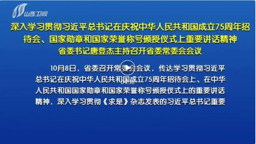 會議指出,習(xí)近平總書記在慶祝中華人民共和國成立75周年招待會上的重要講話,總結(jié)回顧75年來中國共產(chǎn)黨團結(jié)帶領(lǐng)全國各族人民不懈奮斗取得的偉大成就,對推進中國式現(xiàn)代化作出重大部署、提出明確要求,為把這一前無古人的偉大事業(yè)不斷推向前進提供了根本遵循。走好新的征程,要始終堅持黨的領(lǐng)導(dǎo),深刻領(lǐng)悟“兩個確立”的決定性意義,增強“四個意識”、堅定“四個自信”、做到“兩個維護”,持之以恒推進全面從嚴(yán)治黨,確保黨中央各項決策部署在山西不折不扣落到實處。要始終堅持中國特色社會主義道路,堅定歷史自信,增強歷史主動,高舉改革開放旗幟,堅定扛牢使命任務(wù),在推動高質(zhì)量發(fā)展、深化全方位轉(zhuǎn)型上不斷取得新成效。要始終堅持以人民為中心,牢記黨的根本宗旨和國家性質(zhì),樹立和踐行正確政績觀,用心用情用力辦好民生實事,努力讓全省人民在共同奮斗中共享改革發(fā)展成果。要始終胸懷兩個大局、心懷“國之大者”,自覺把山西工作放到黨和國家工作大局中來定位、謀劃和推進,為以中國式現(xiàn)代化全面推進強國建設(shè)、民族復(fù)興偉業(yè)作出山西貢獻。