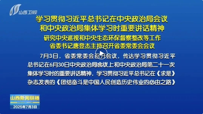 7月3日,省委常委會召開會議,傳達學(xué)習(xí)貫徹習(xí)近平總書記在6月30日中央政治局會議上和中央政治局第二十一次集體學(xué)習(xí)時的重要講話精神,學(xué)習(xí)貫徹習(xí)近平總書記在《求是》雜志發(fā)表的《團結(jié)奮斗是中國人民創(chuàng)造歷史偉業(yè)的必由之路》重要文章,傳達貫徹張國清同志在晉調(diào)研指示精神,聽取中央巡視邊巡邊改、中央生態(tài)環(huán)保督察邊督邊改工作情況匯報,研究部署下一步工作。省委書記唐登杰主持會議。
