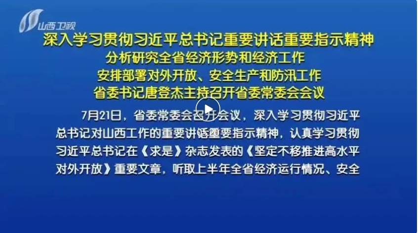 7月21日,省委常委會召開會議,深入學習貫徹習近平總書記對山西工作的重要講話重要指示精神,認真學習貫徹習近平總書記在《求是》雜志發(fā)表的《堅定不移推進高水平對外開放》重要文章,聽取上半年全省經濟運行情況、安全生產形勢和防汛工作情況匯報,研究部署下一步工作,審議通過《關于嚴格落實“四水四定”的實施方案》。省委書記唐登杰主持會議。