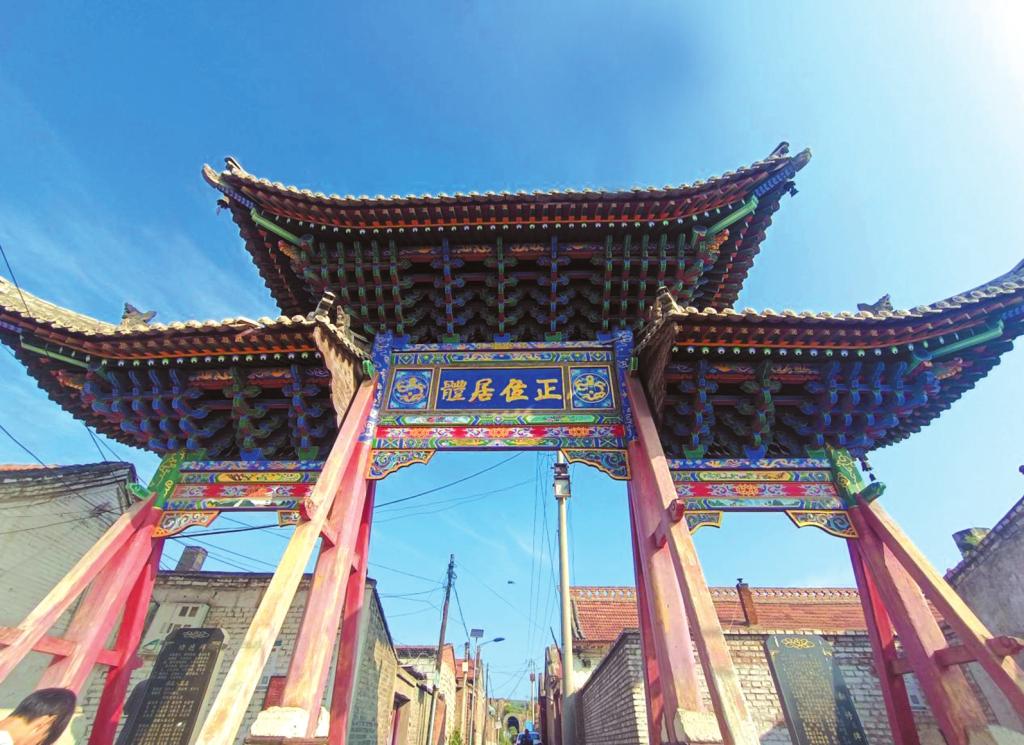 五寨縣三岔木牌坊坐落于三岔堡十字大街的北口,始建于明萬歷九年(1581年)。木牌坊坐北朝南,座基為60厘米高的石砌臺基。牌坊呈三項疊襯“品”字形制,四楹三門,坊高7.25米,通寬11.2米,其中門高3米,寬3.15米,車馬通行;兩邊門略低,高2.65米,寬2米,只呈門樣,不作通行。四楹都用雙木斜卡,并抱有雕獅的石鼓,以鐵條箍制,既固根基,又顯威嚴(yán)。欄坊下裝有木刻匾額,正面題“正位居體”,背面題“大觀在上”。頂端起脊彩飛,雙層檐頭,青瓦蓋頂;下檐五步彩飛檐頭拱,結(jié)構(gòu)奇巧,造型美觀,檐頭四角掛有風(fēng)鈴,微風(fēng)輕拂,鈴聲悠揚,蔚為壯觀。三岔木牌坊是五寨縣境內(nèi)僅存的一座木結(jié)構(gòu)明代古建筑,具有較高的建筑文化水平和藝術(shù)鑒賞價值。2007年6月6日,忻州市人民政府公布其為市級文物保護(hù)單位。