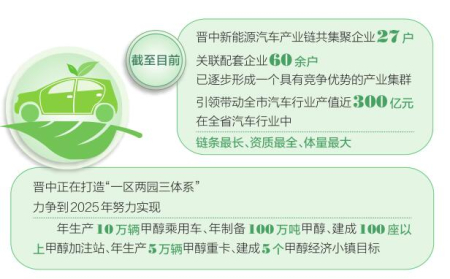 早在2022年初,在新能源汽車產(chǎn)業(yè)集群成型成勢的基礎(chǔ)上,晉中市搶抓戰(zhàn)略機(jī)遇,啟動(dòng)建設(shè)國家級甲醇經(jīng)濟(jì)示范區(qū),力爭三年成型、五年成勢,構(gòu)建千億級甲醇經(jīng)濟(jì)生態(tài),省委、省政府把建設(shè)晉中國家級甲醇經(jīng)濟(jì)示范區(qū)上升為省級戰(zhàn)略。