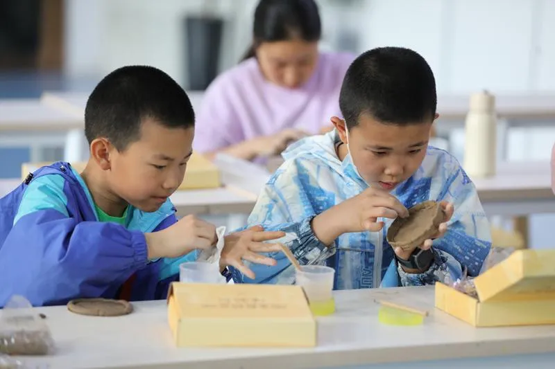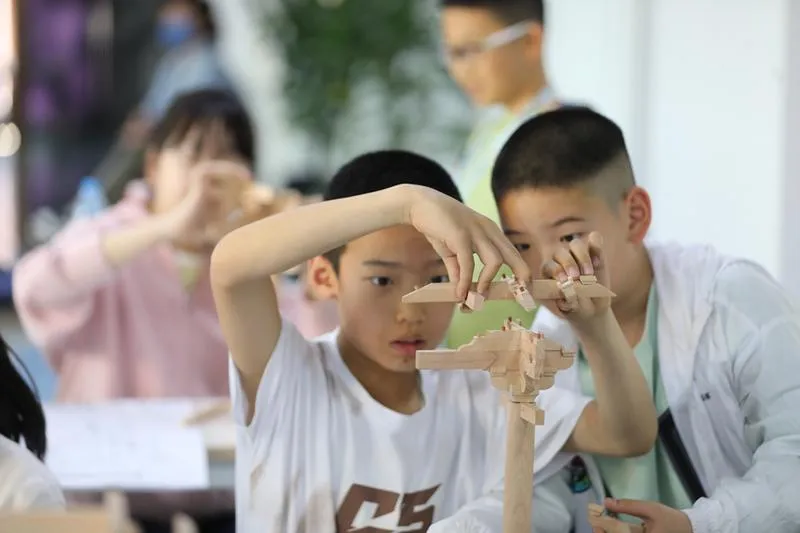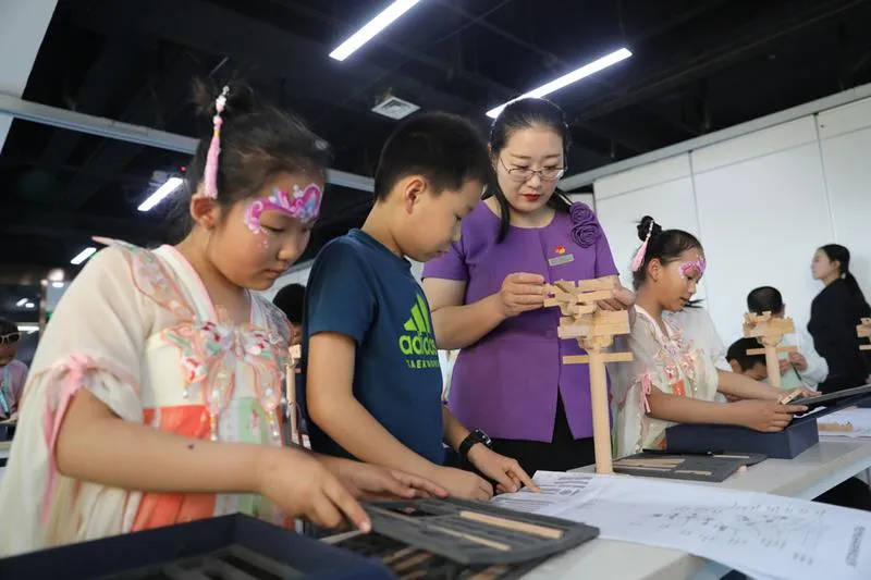 ▲動(dòng)手體驗(yàn)唐代斗拱的搭建 山西日?qǐng)?bào)新媒體記者吳曉慶報(bào)道 5月2日,山西博物院教育空間,同學(xué)們?cè)诶蠋煹闹笇?dǎo)下動(dòng)手實(shí)踐泥條盤筑、斗拱拼裝?!拔逡弧惫?jié)假日期間,山西博物院推出“古代生活中的勞動(dòng)之美”主題教育活動(dòng),讓報(bào)名參加的青少年近距離感受古人的勞動(dòng)智慧,體驗(yàn)勞動(dòng)之美。 現(xiàn)場(chǎng),一團(tuán)陶泥在老師和同學(xué)們靈巧的手中變成一只可愛的小兔子、或一只造型美觀的花瓶。泥條盤筑是新石器時(shí)代手工制陶最常見的方法之一,此次制作體驗(yàn)活動(dòng)中,同學(xué)們通過了解陶器制作技術(shù),并結(jié)合泥條盤筑動(dòng)手體驗(yàn),感受到幾千年前古人的勞動(dòng)技能,體驗(yàn)古老的制陶工藝。 在古建小課堂斗拱搭建中,省博物院老師選取中國(guó)古代建筑最關(guān)鍵也是最有特色的斗拱為原型,指導(dǎo)同學(xué)們制作了五臺(tái)山佛光寺唐代斗拱模型。不僅可以了解山西古代輝煌燦爛的建筑文化,還可以親自動(dòng)手,體驗(yàn)唐代斗拱的搭建,感受古代木作匠師的智慧,增進(jìn)對(duì)中國(guó)古代建筑文化的了解。