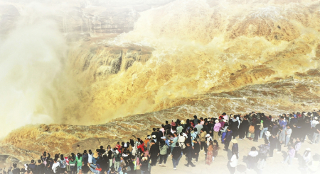 “壺口”的稱謂,最早見于《尚書·禹貢》中,如“既載壺口,治梁及岐”“壺口、雷首,至于太岳”,都與傳說中大禹治水的路線與策略有關(guān),壺口是大禹治水的始發(fā)之地。黃河壺口瀑布旅游區(qū)是國家5A級旅游景區(qū),是中國第二大瀑布,全世界最大的黃色瀑布。站在壺口觀景臺往上看,只見洶涌的黃河水簇擁著、吶喊著撲到眼前,其勢如千軍萬馬,漫山遍野般涌來,到了壺口,那一排排的巨浪在翻著水花馳騁飛奔中,突然墜入深坑,發(fā)出了震耳的嘶鳴聲,濺起了漫天水霧,再簇擁著奔向遠方……而此時的你,只會感覺到大自然的偉岸和自己的渺小。