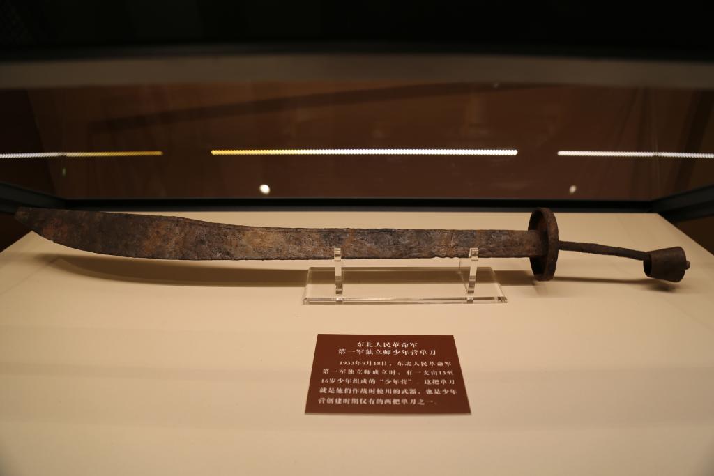 東北人民革命軍第一軍獨立師少年營單刀。新華社記者張博宇 攝 “九一八事變”后,中共滿洲省委派遣楊靖宇、趙尚志、周保中等共產(chǎn)黨員奔赴東北各地,開始創(chuàng)建黨領導下的抗日武裝。1933年秋,東北人民革命軍第一軍獨立師“少年營”成立。70多個少年加入這支隊伍,他們中有隨父母參加抗日的孩子,有被解放的童工,還有孤兒…… “這把繳獲來的鐵制單刀,是黨創(chuàng)建少年營時為之配備的武器之一。少年營跟隨將士們主要在吉林磐石地區(qū)展開抗日斗爭?!奔质〔┪镌簹v史部副主任王航說。 1933年10月30日,少年營迎來首戰(zhàn)。那一役,他們在樺甸縣里面溝設伏,成功擊斃了日偽軍10人,俘虜10人,繳獲了大量物資,首戰(zhàn)告捷。1935年1月,中共磐石中心縣委機關遭到突襲。在突破敵人封鎖線途中,少年營沉著冷靜,隱藏在密林深處,打退了敵人一次次圍追堵截。 “少年營配合將士們英勇作戰(zhàn),破壞敵人交通運輸線、攻占敵人縣城據(jù)點,成就了敢打敢拼的‘鐵血少年營’威名?!蓖鹾秸f。?湯彥宜說,在中華民族生死存亡的歷史關頭,中國共產(chǎn)黨帶領中華兒女浴血奮戰(zhàn),書寫了百折不撓的抗戰(zhàn)史詩,孕育出偉大抗戰(zhàn)精神,激勵著黨團結帶領人民不斷從勝利走向勝利。 (責任編輯:梁艷) |