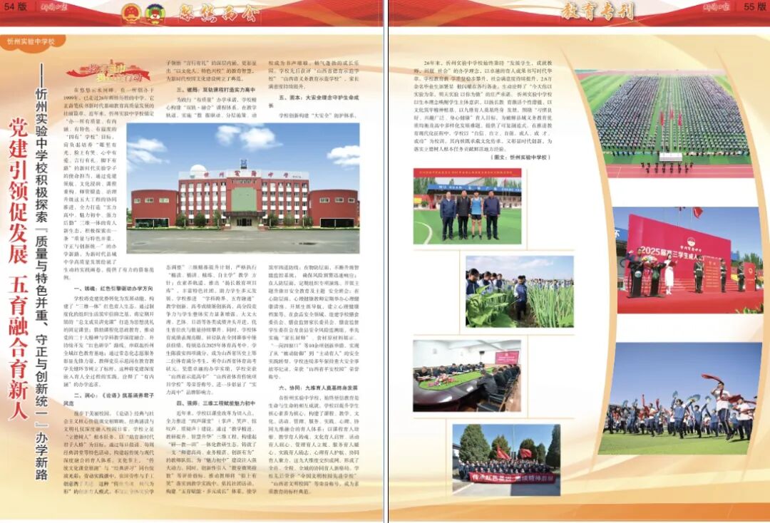 在悠悠云水河畔,有一所創(chuàng)辦于1999年,已走過(guò)26年輝煌歷程的中學(xué),它正奮筆疾書(shū)新時(shí)代基礎(chǔ)教育高質(zhì)量發(fā)展的壯麗篇章。近年來(lái),忻州實(shí)驗(yàn)中學(xué)校錨定“辦一所有質(zhì)量、有內(nèi)涵、有特色、有溫度的‘四有’學(xué)?!蹦繕?biāo),肩負(fù)起培養(yǎng)“眼里有光、臉上有笑、心中有愛(ài)、言行有禮、腳下有路”的新時(shí)代實(shí)驗(yàn)學(xué)子的使命擔(dān)當(dāng),通過(guò)黨建領(lǐng)航、文化浸潤(rùn)、課程重構(gòu)、師資鍛造、治理升級(jí)這五大工程的協(xié)同推進(jìn),全力打造“實(shí)力高中、魅力初中、強(qiáng)力后勤”三維一體的育人新生態(tài),積極探索出一條“質(zhì)量與特色并重、守正與創(chuàng)新統(tǒng)一”的辦學(xué)新路,為新時(shí)代縣域中學(xué)高質(zhì)量發(fā)展繪就了生動(dòng)的實(shí)踐畫(huà)卷,提供了有力的借鑒范例。